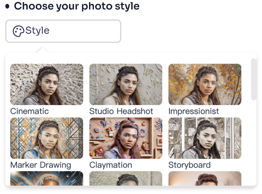 Now, choose from the AI kissing photo styles provided. From studio level headshot to futuristic sci-fi kissing portrait, making perfect AI kissing photos is easy thanks to Vidqu AI.